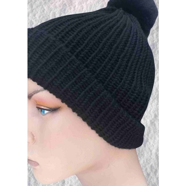 El Örgüsü Doğal Yün Ve Akrilik Karışımlı Sıcacık Kış Beresi Siyah Renk