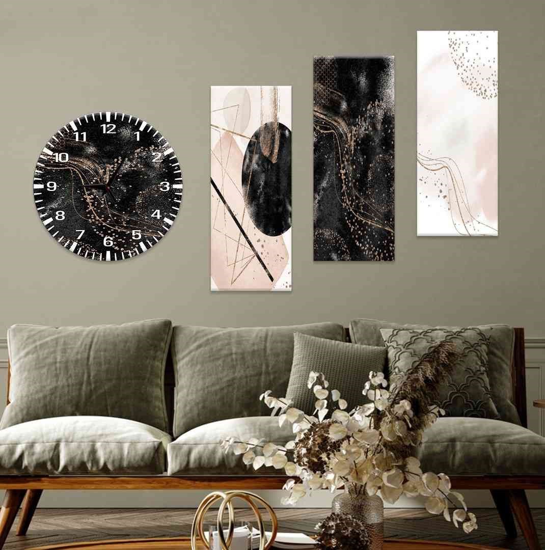 Evimona 4 Parça Çiçek Temalı Mdf Saatli Tablo Ds-078