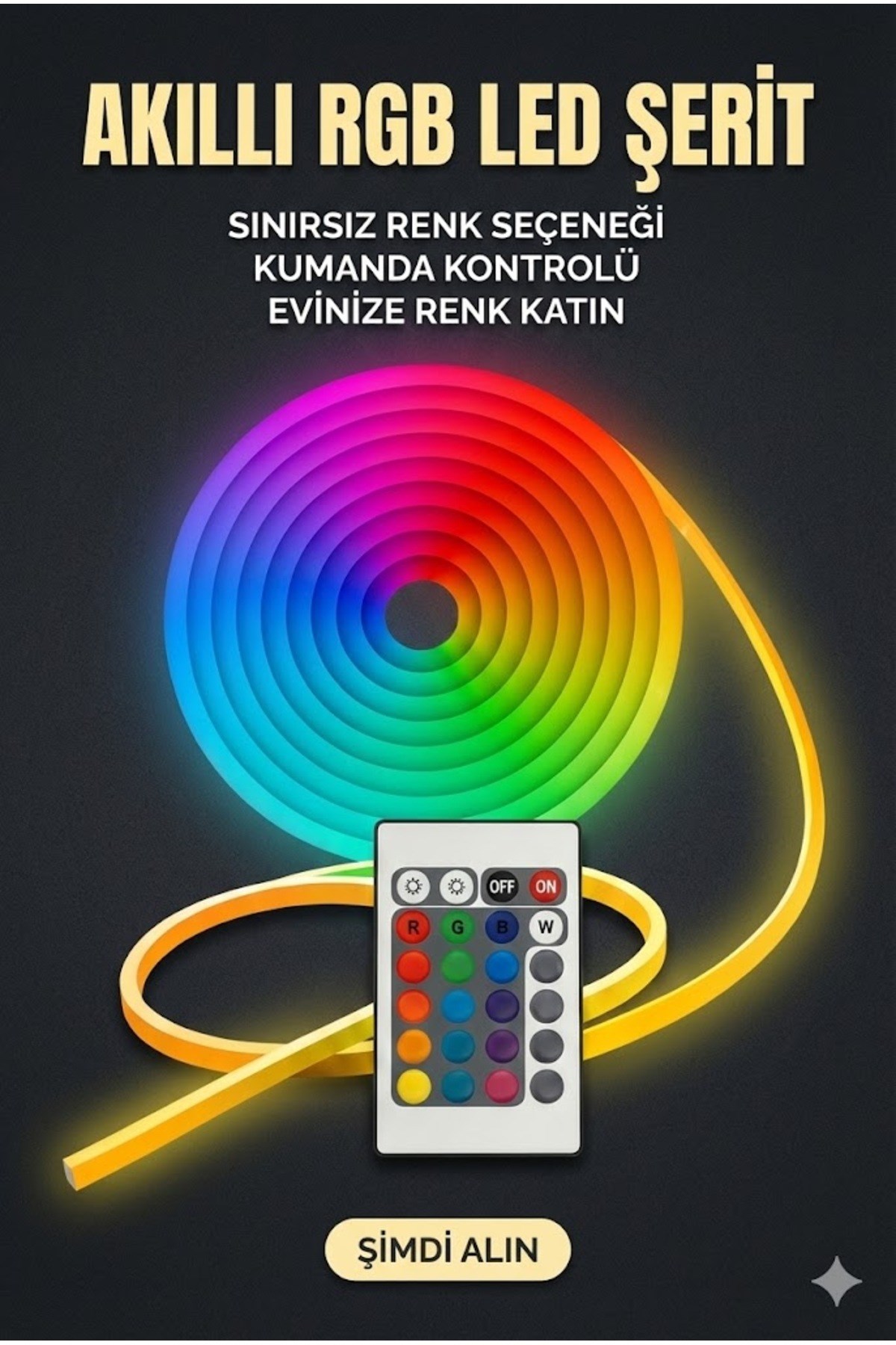 3 Metre Akıllı RGB LED Şerit Işık - Kumandalı, Esnek Neon Görünümlü Dekoratif Aydınlatma