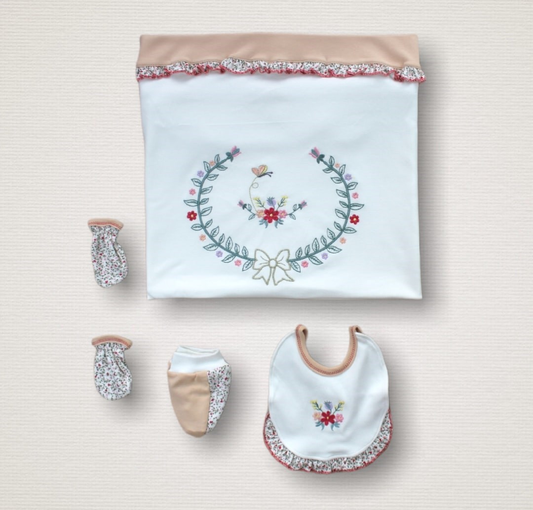 İleri nakış teknolojisi ile tasarlanmıştır. Üzerinde kullanılan çıtçıt bebek tenine temas etmemektedir. Ürünlerimizde polyester iplik kesinlikle kullanılmaz. Kullanılan ipler pamuklu veya viskon karışımlı iplerdir. Ürünlerimizin kol birleştirme, yaka birleştirme, pantolon ağ birleştirme vb. yerlerinde ki dikişler de, ürünün kullanımı esnasında, zorlanarak zarar görmesini engellemek amacıyla belirtilen kısımlarda, ekstra güçlendirilmiş dikiş şekli olan ÇİMA dikişi uygulanması şarttır. Ürünlerimizde, beden etiket numarası ve yıkama talimatı bilgilerinin ürün ensesine, ense baskısı şeklinde ve ekolojik boyalar ile boya baskı olarak uygulanmaktadır. Ürünlerimizde kullanılan çıtçıtlar nikel free sertifikalı, ekstra kaliteli çıtçıtlardır. Çıtçıt ve düğme yerleri (detayları), bebek yatarken kesinlikle bebeğe zarar vermeyecek yerlere gelecek şekilde tasarlanmıştır. Ürünlerimizde, fermuar vb. aksesuarlar uluslararası standartlarda, anne ve bebek sağlığına zarar vermeyecek şekildeki sertifikalı markalardan ve modellerden kullanılır. Ürünlerimizde, bebeğin tenine temas eden yüzeylerde, nakış arkası vb. riskli yüzeylerde ve bebeğin tenini tahriş etme olasılığı olan tüm detaylarda mutlaka tela vb. yapıştırılarak, bebeğin zarar görmesini engelleyecek gerekli önlemlerin alınması şarttır. Ürünlerimizde kullandığımız kumaş, tül, dantel vb. malzemelerin tamamının antialerjik ve anti bakteriyel özelliklerde ki malzemelerden üretilmiş olması şarttır.