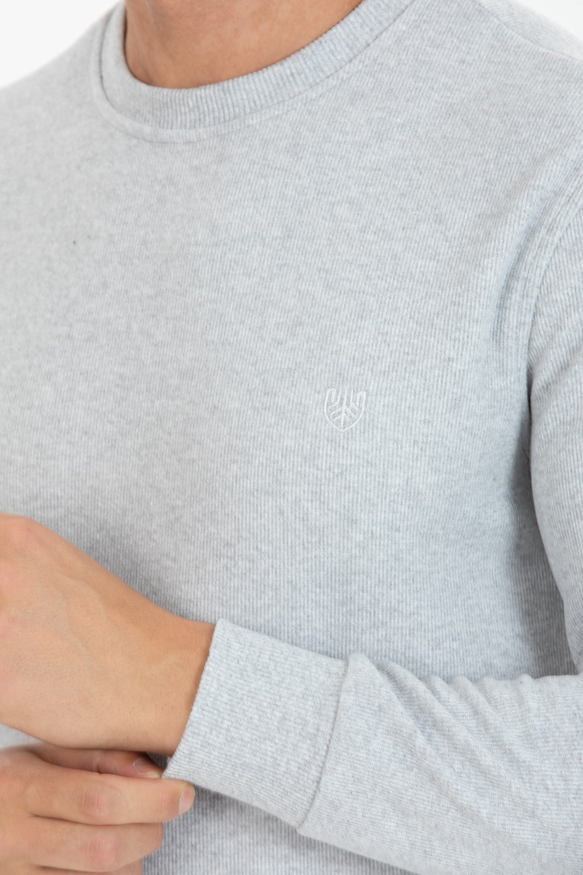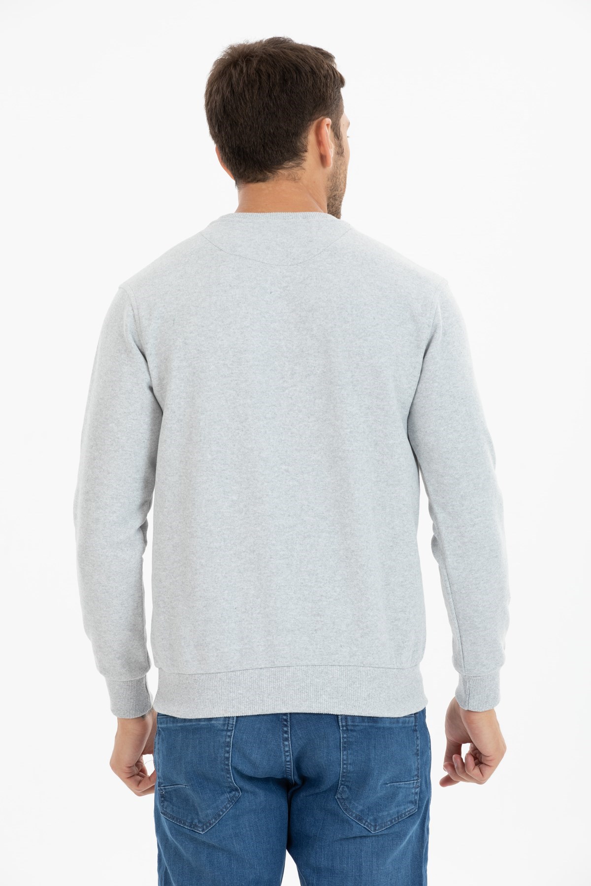 Erkek Açık Gri Standart Fit Normal Kesim Pamuk 0 Sıfır Yaka Sweatshirt