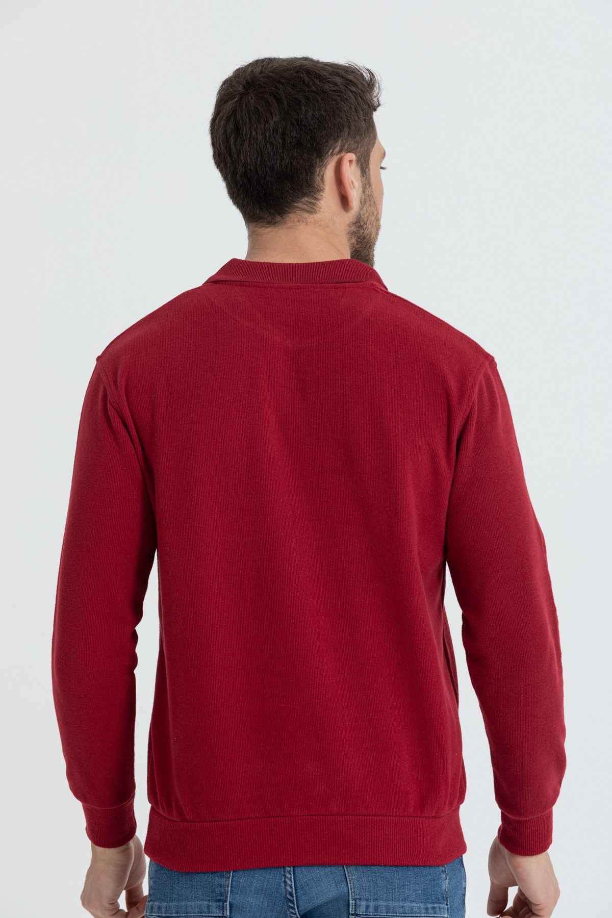 Erkek Bordo Polo Yaka Standart Fit Normal Kesim Sweatshirt