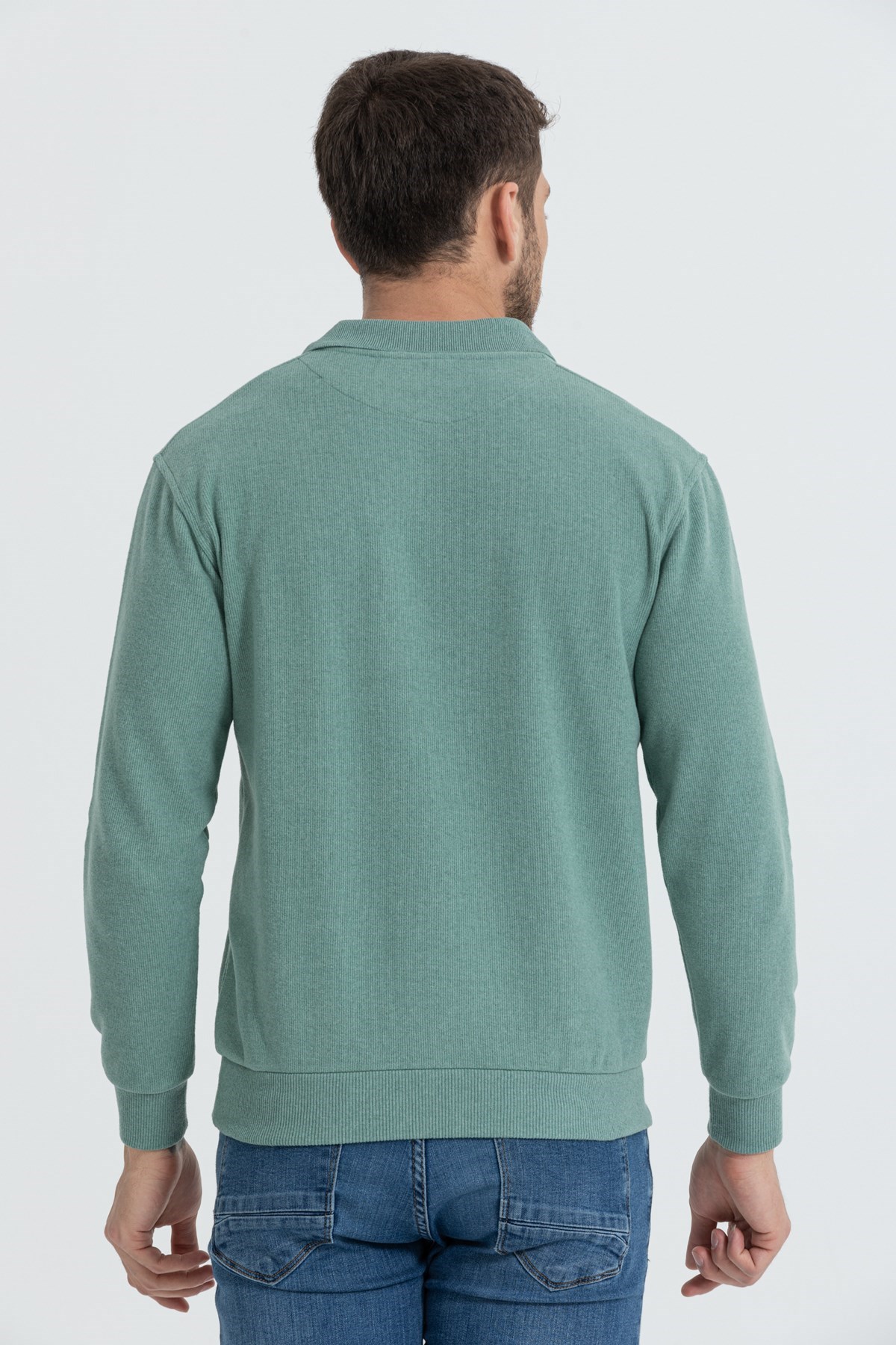 Erkek Çağla Yeşili Polo Yaka Standart Fit Normal Kesim Sweatshirt