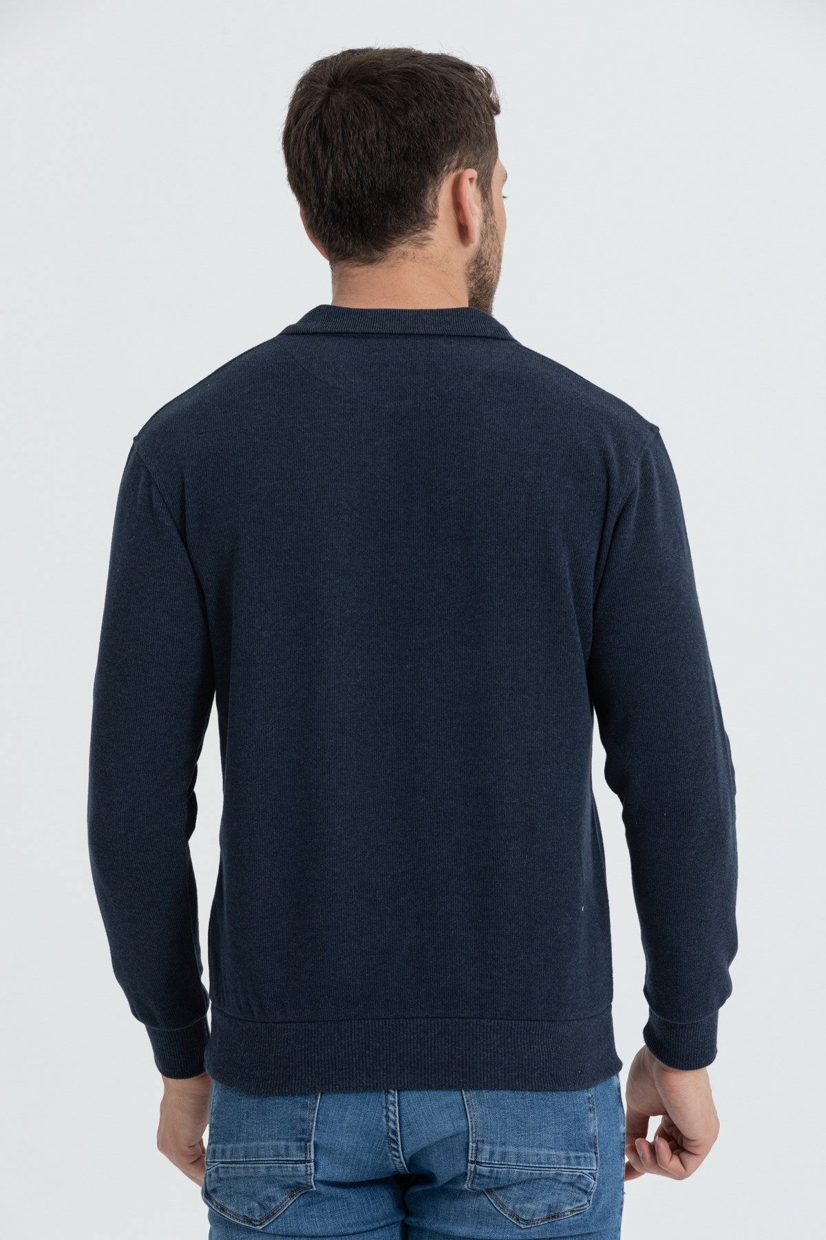 Erkek İndigo Polo Yaka Standart Fit Normal Kesim Sweatshirt