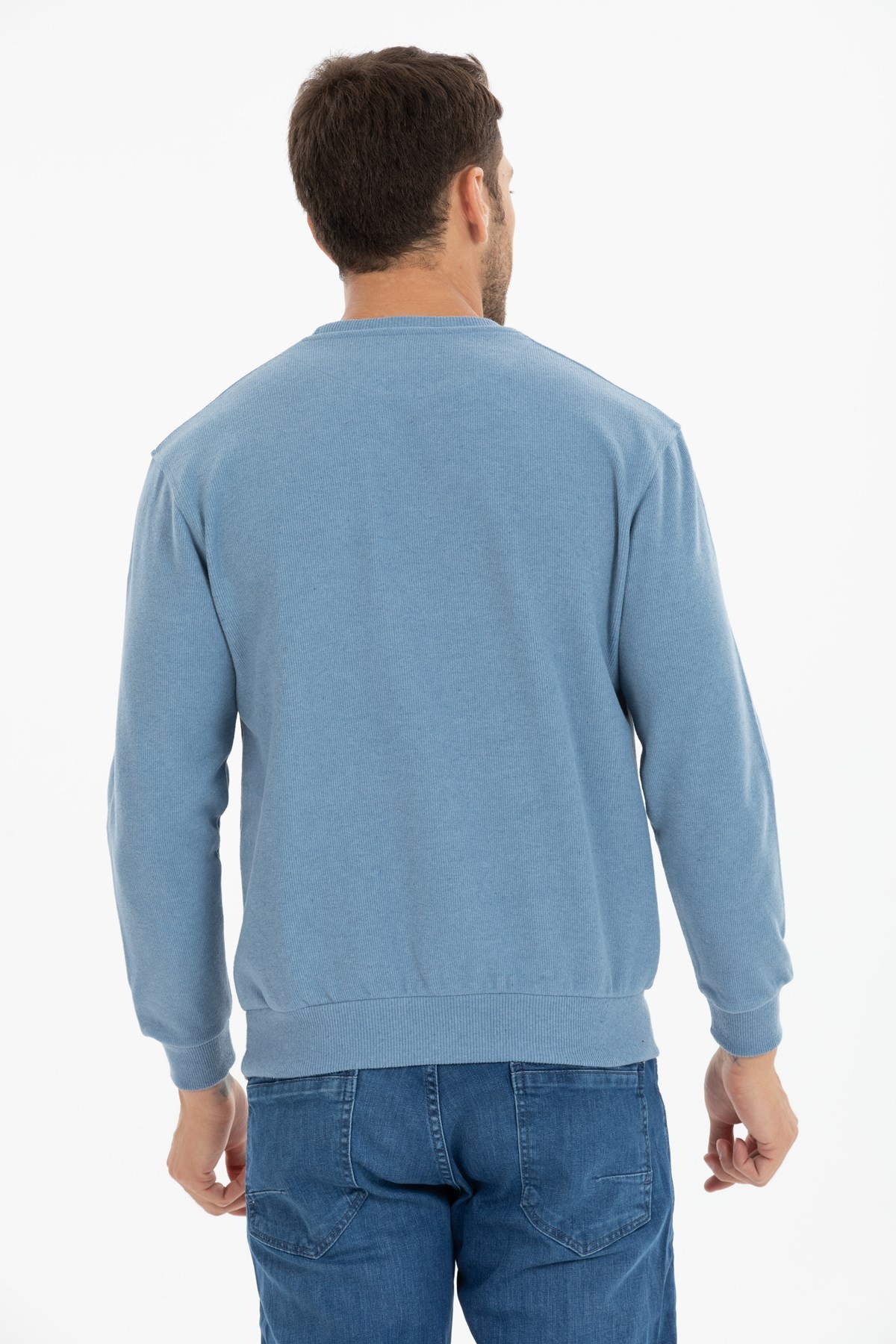 Erkek Mavi Standart Fit Normal Kesim Pamuk 0 Sıfır Yaka Sweatshirt