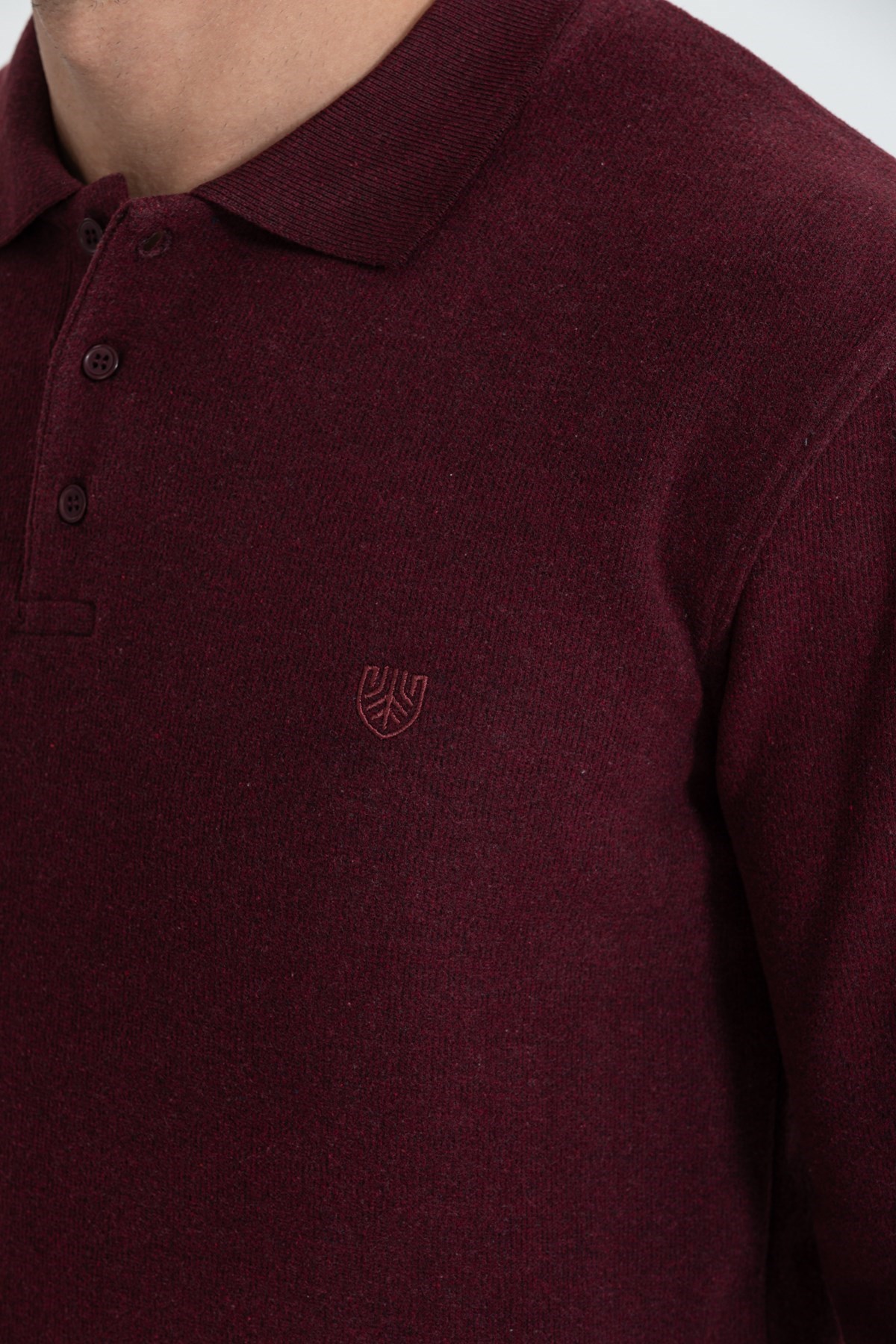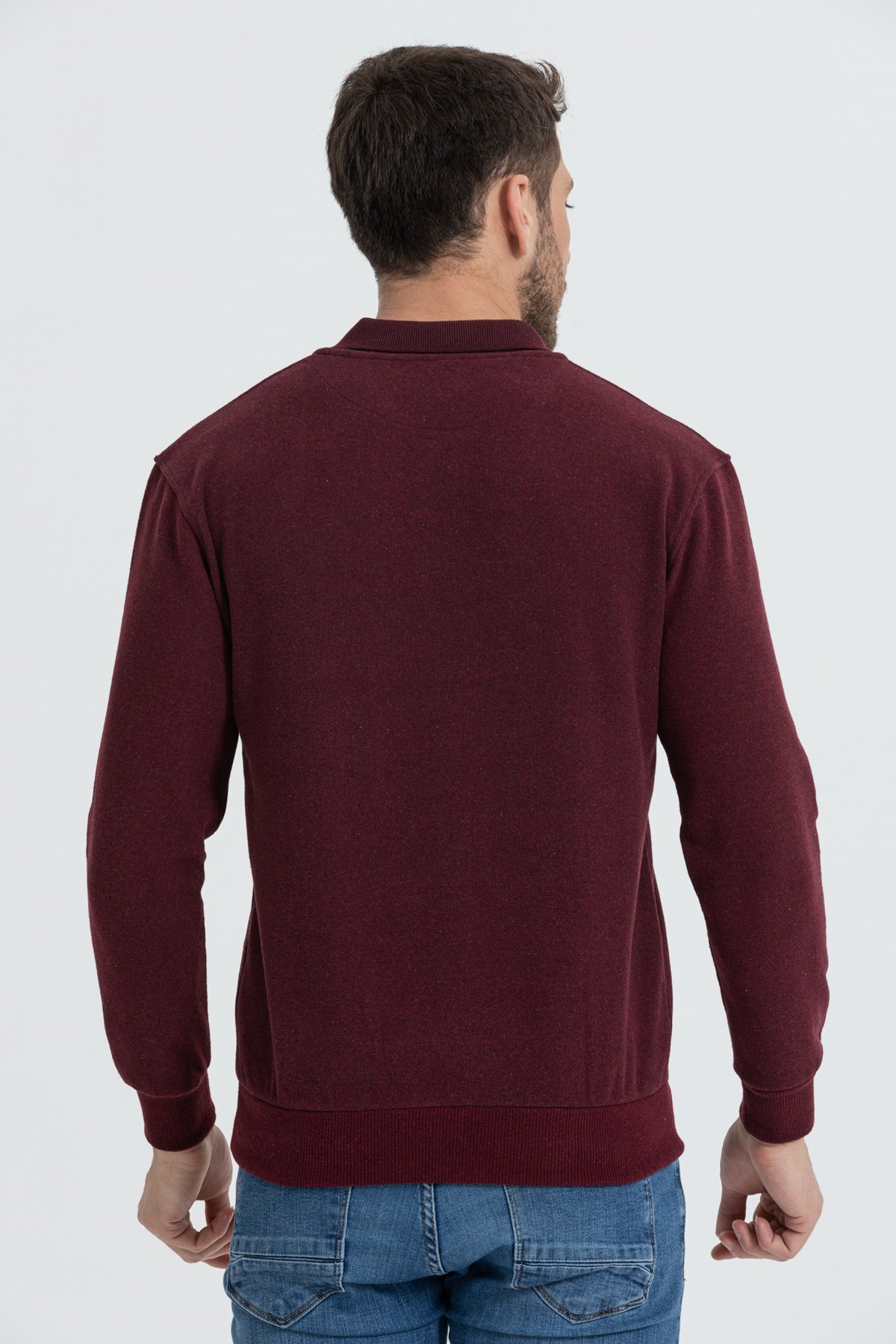 Erkek Mürdüm Polo Yaka Standart Fit Normal Kesim Sweatshirt