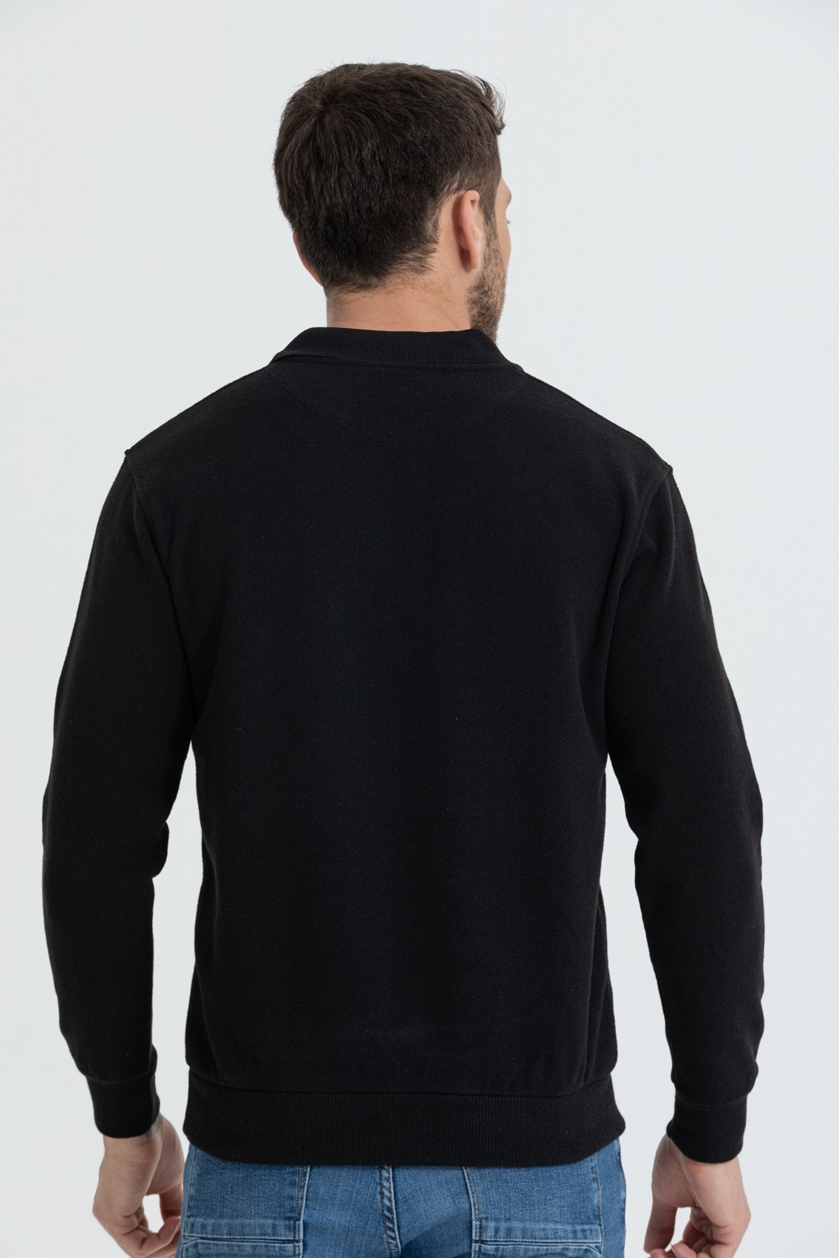 Erkek Siyah Polo Yaka Standart Fit Normal Kesim Sweatshirt