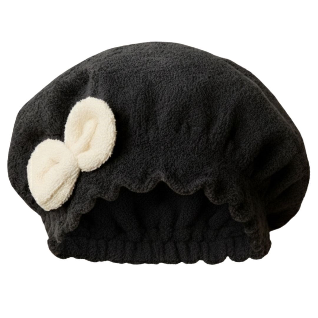 Saç Kurulama Banyo Duş Bonesi – %100 Pamuk , Fiyonklu Siyah