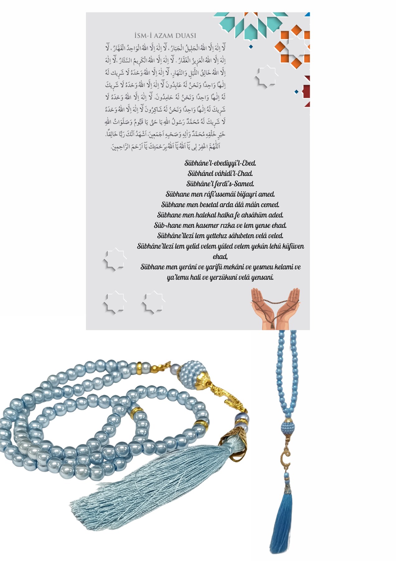 Namaz Tesbihi Vavlı 99'lu Cam İncili İsmi Azam Dua Kartı İle Mavi Renk Hediyelik