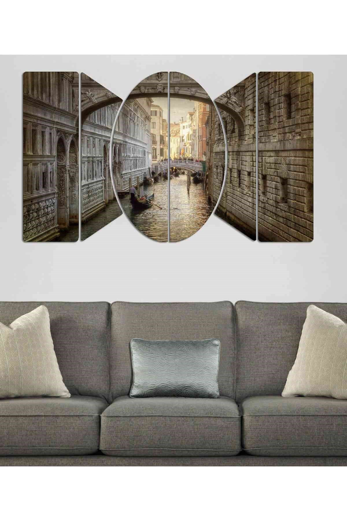 Evimona 4 Parça Mermer Desen Temalı Mdf Saatli Tablo Ds-029