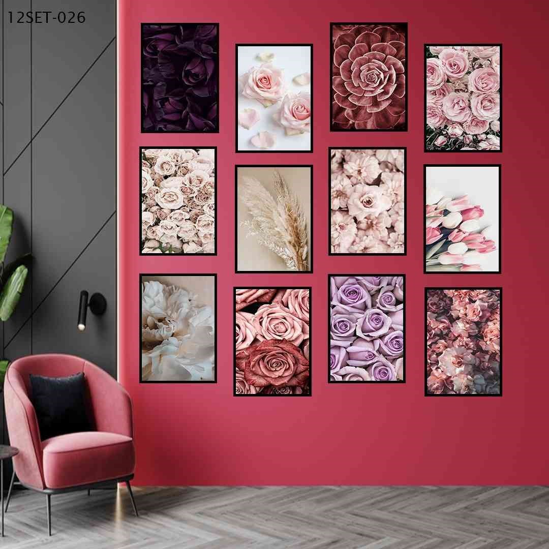12Li Çerçeve Görünümlü Pembe Çiçekler Mdf Tablo - 12set-026 15x20