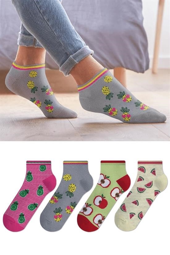 Meyve Desenli Dört Mevsim Renkli Unisex 4'lü Patik Çorap Seti 42-46