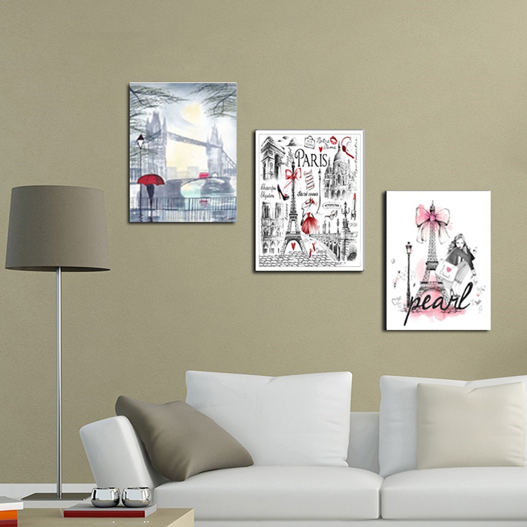 3 Parça Paris Eyfel Mdf Tablo - T-3Prc40X30-0049 40X30