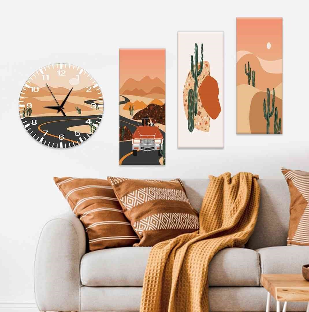 Evimona 4 Parça Çiçek Temalı Mdf Saatli Tablo Ds-089