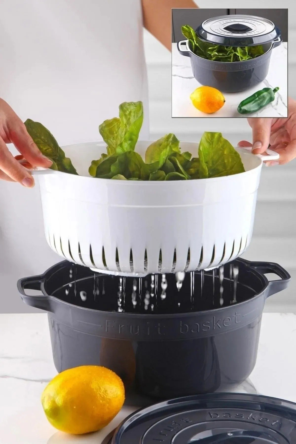 Yuvarlak Tencere Model Süzgeçli Meyve - Sebze Saklama Kabı Buzdolabı Organizeri