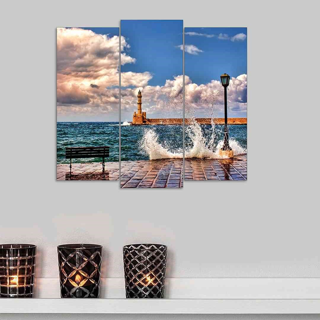 3 Parça Chania Deniz Feneri Mdf Tablo - T-3Dikey-41 19X40