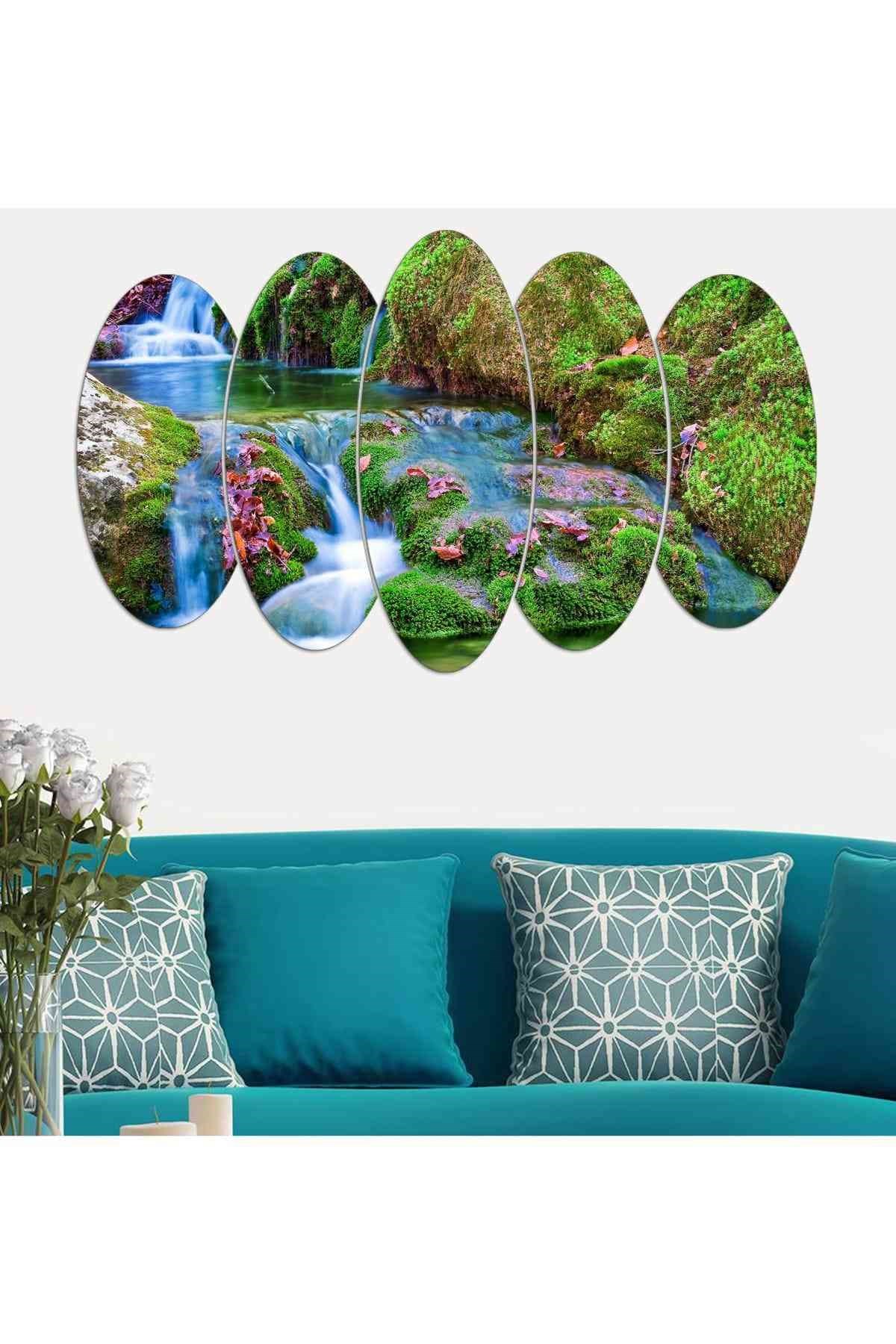 Çiçek Temalı 5 Parçalı Mdf Dekoratif Tablo F-8-17870