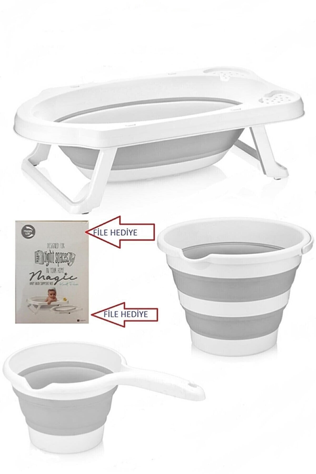 Fileli Gri Katlanır Banyo Seti Çocuk Bebek Banyo Seti Katlanabilir Set