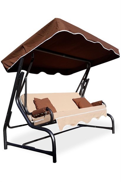 Bahçe Balkon Salıncağı 3 Üç Kişilik Teras Salıncak Kahve Kapuçino-18130