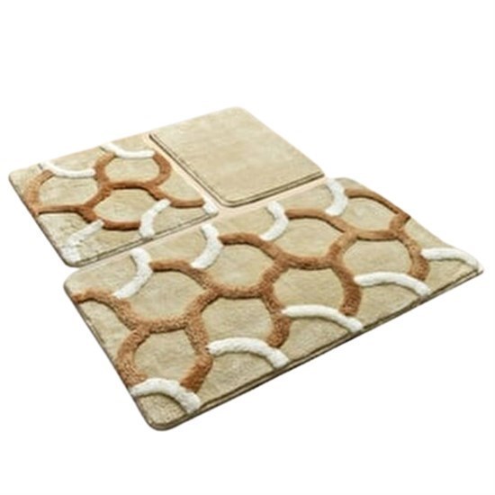 Elegant Bej 3 Lu Set Klozet Takımı, Banyo Paspas Seti Halısı-21060