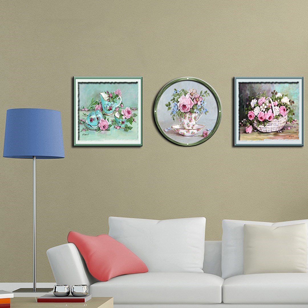 Çerceve Baskılı Çiçekli Dekor 3Lü Mdf Tablo - T-3Dekor-504 30X30