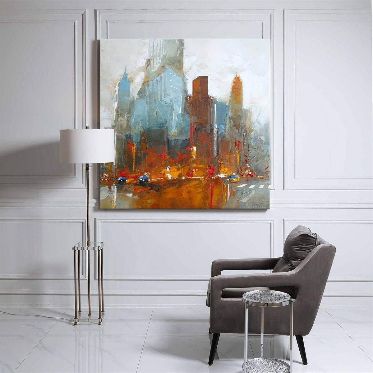 Soyut Şehir 2 - Yağlı Boya Dokulu Tablo 80X80 cm Siyah