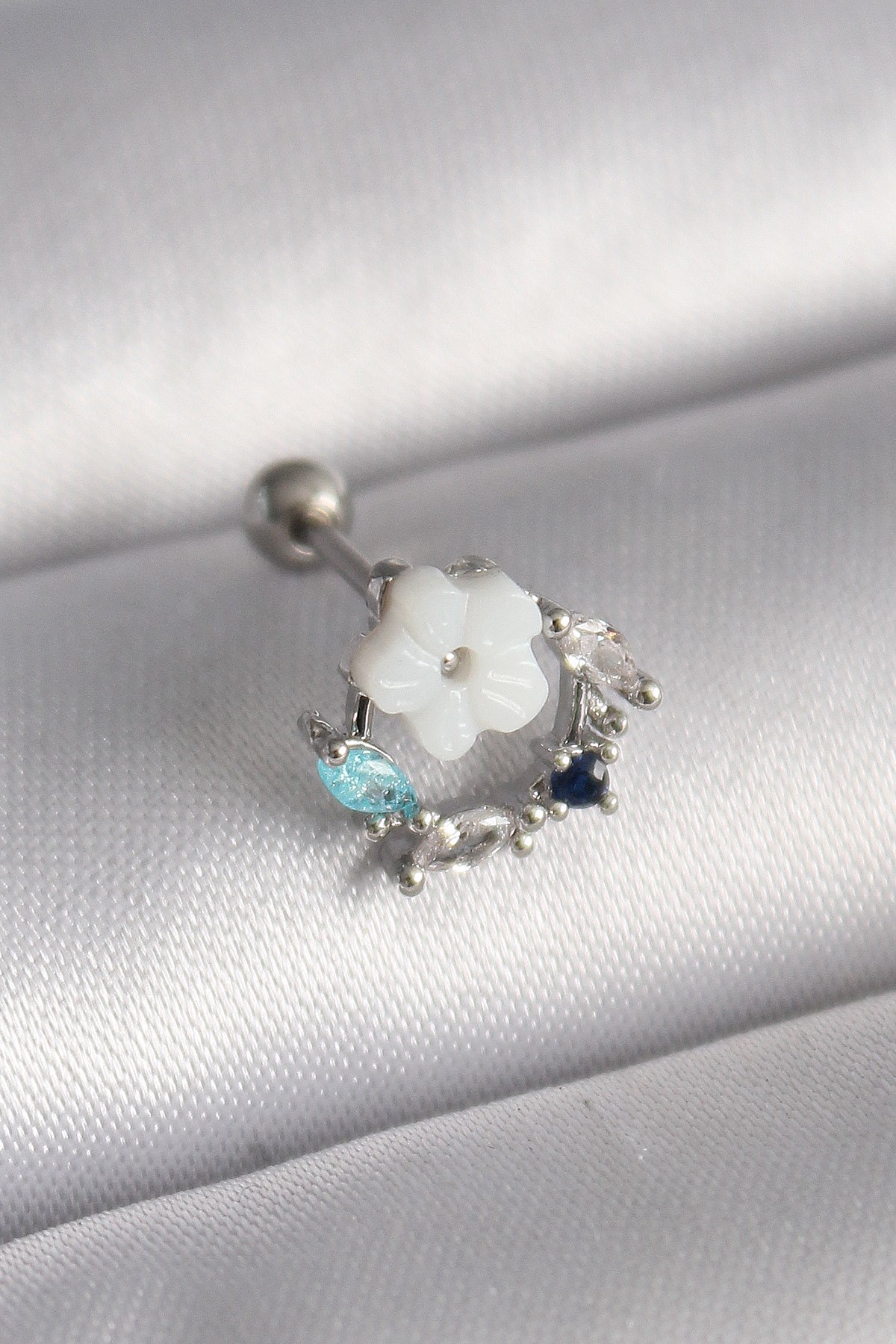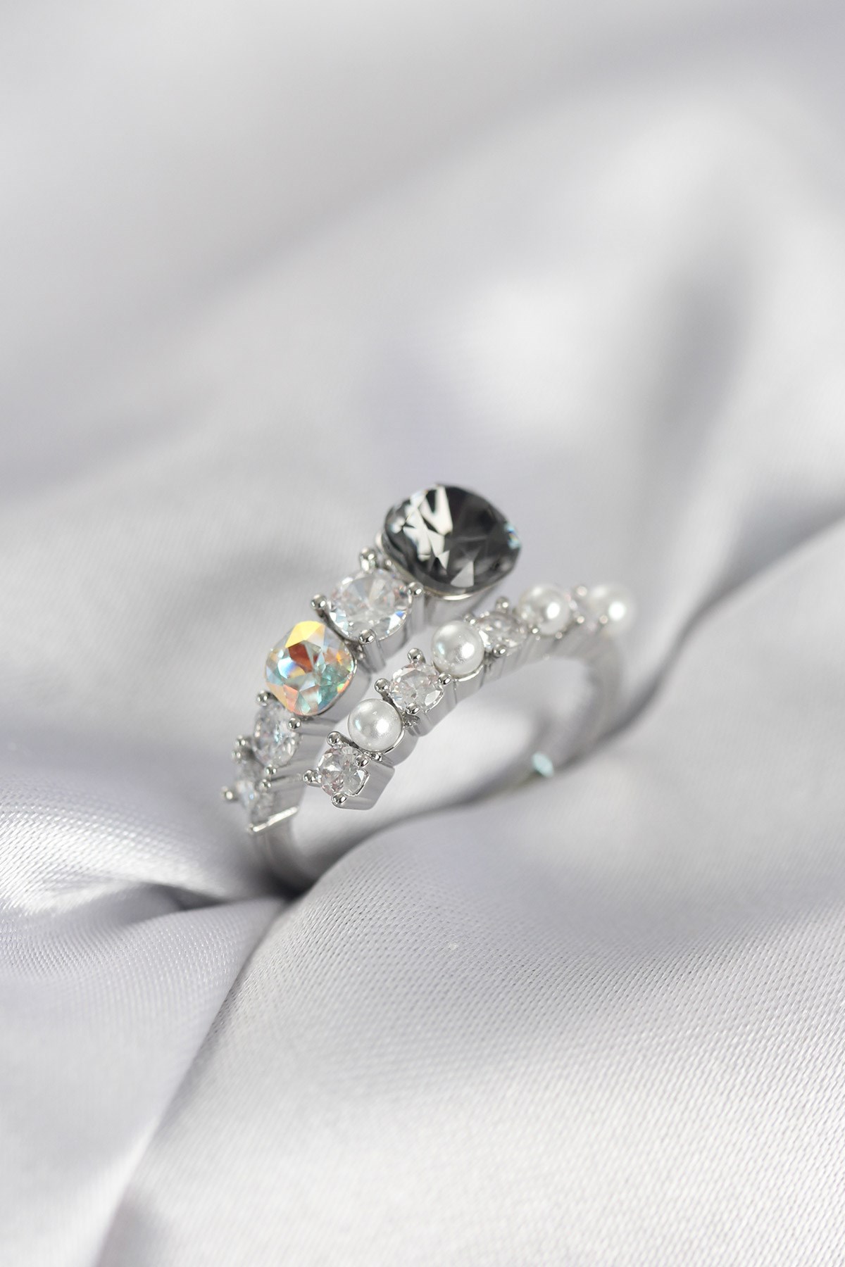 Gümüş Renk Pirinç Zirkon Taşlı İncili Kadın Yüzük