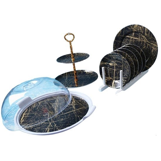 Altın Mermer Pasta Servis Seti / 13 Parça Ve Ofset Baskılı Kutulu - 30131