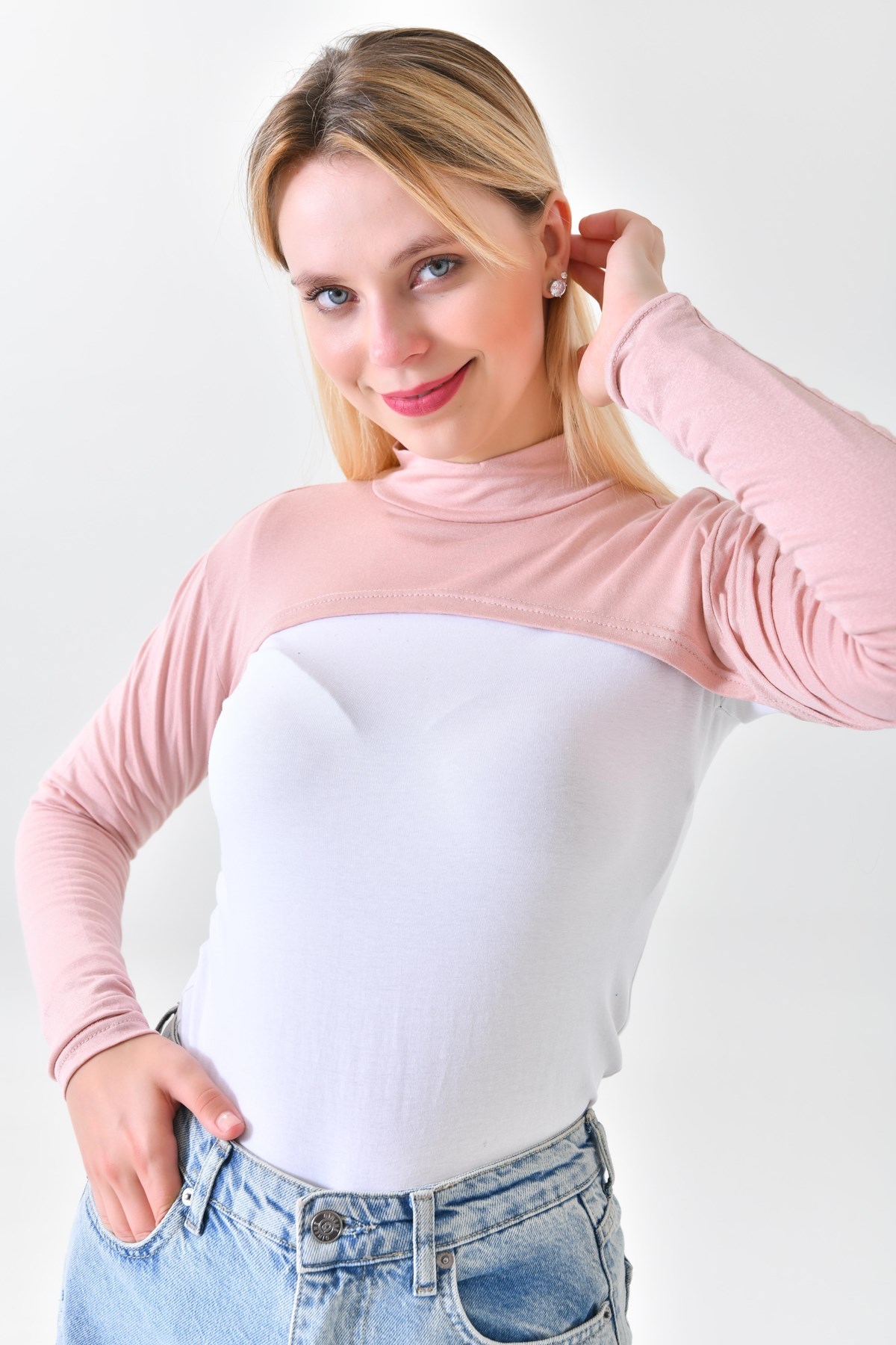 Dik Yaka Boyunluklu Kolluk - Pudra