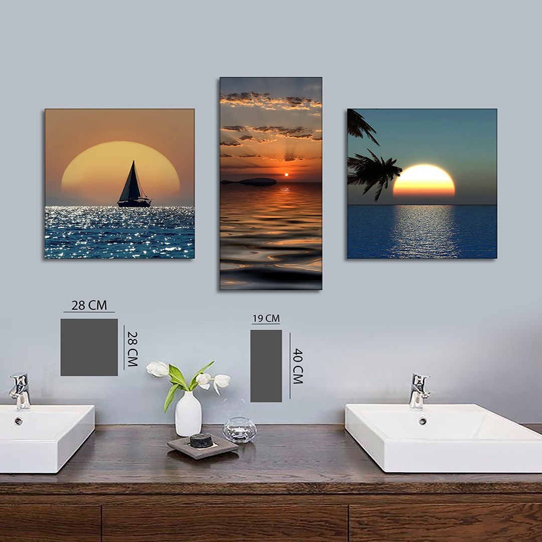 3 Parça Gün Batımı Mdf Tablo - 3Yatay-535 30X40