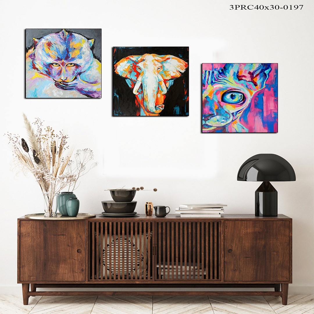 3Parça İllüstrasyon Hayvan Desenleri Mdf Tablo - 3Prcy40X30-0197 40X30