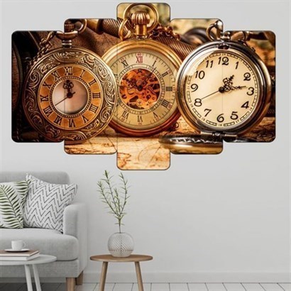 Saat Temalı 5 Parçalı Mdf Dekoratif Tablo 5M-21-17970