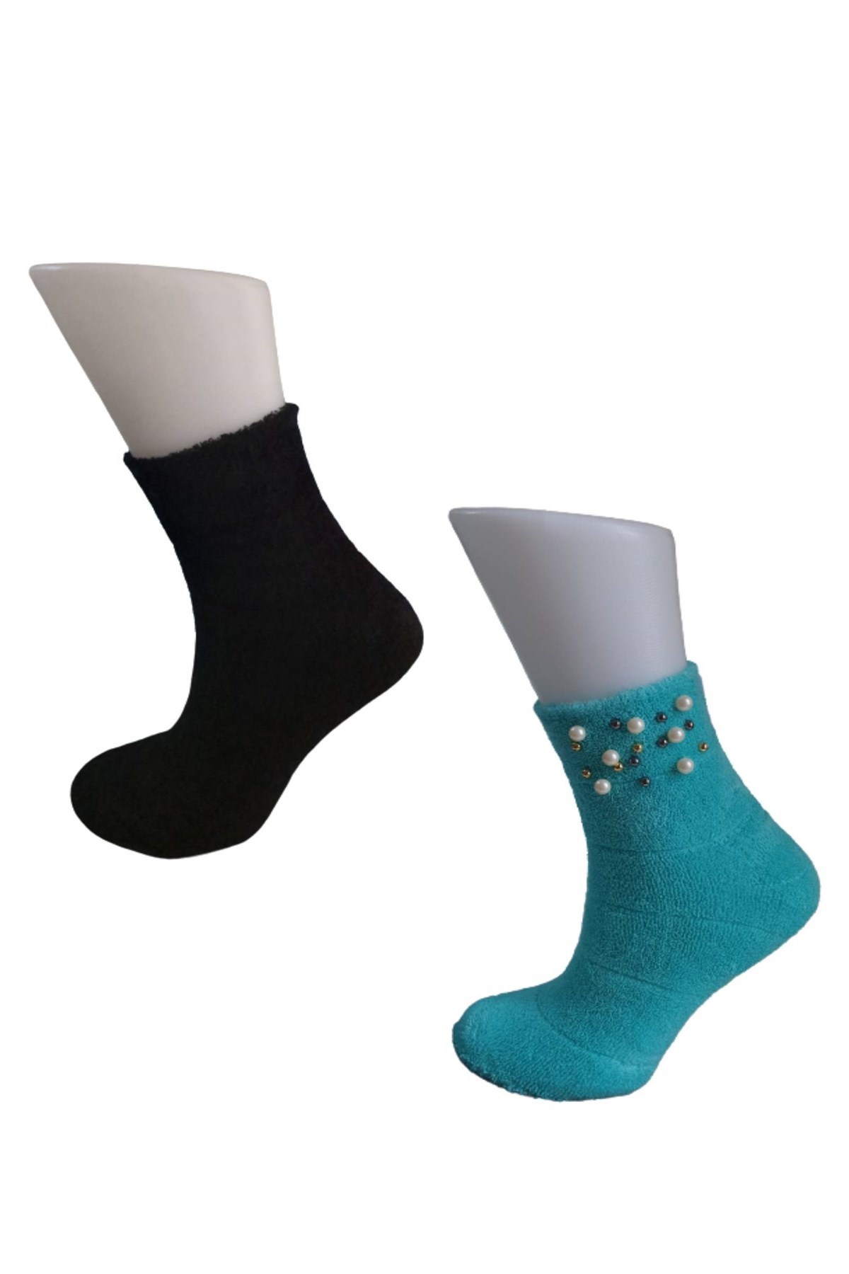 Edwol Kadın İncili ve Düz İkili Havlu Soket Çorap