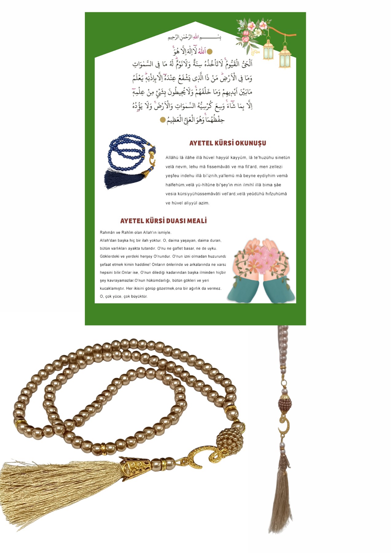 Namaz Tesbihi Vavlı 99'lu Cam İncili Ayet-el Kürsi Dua Kartı İle Süt Kahve Renk Hediyelik