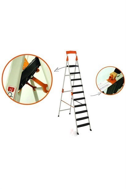 Harbinger 9+1 Merdiven Ürün Özellikleri • Zeminden üst basamağa kadar 190 cm yükseklik imkanı. • % 100 yerli üretimdir. • Ev, ofis ve bahçelerde kullanıma uygundur. • Sağlam, estetik ve pratik bir merdivendir. • Katlanabilir özelliği sayesinde yerden tasarruf etmenizi sağlar. • Plastik basamakları sayesinde kaymayı önler. • Basamaklarda kullanılan çelik perçinler ürüne dayanıklılık ve uzun ömürlü kullanım imkanı sağlamaktadır. • Geniş basamakları ergonomik bir kullanım sunmaktadır. • Nano teknolojisi uygulamasıyla boya öncesi özel spreyle temizleme. • Tamamı elektrostatik fırınlanmış toz boya.