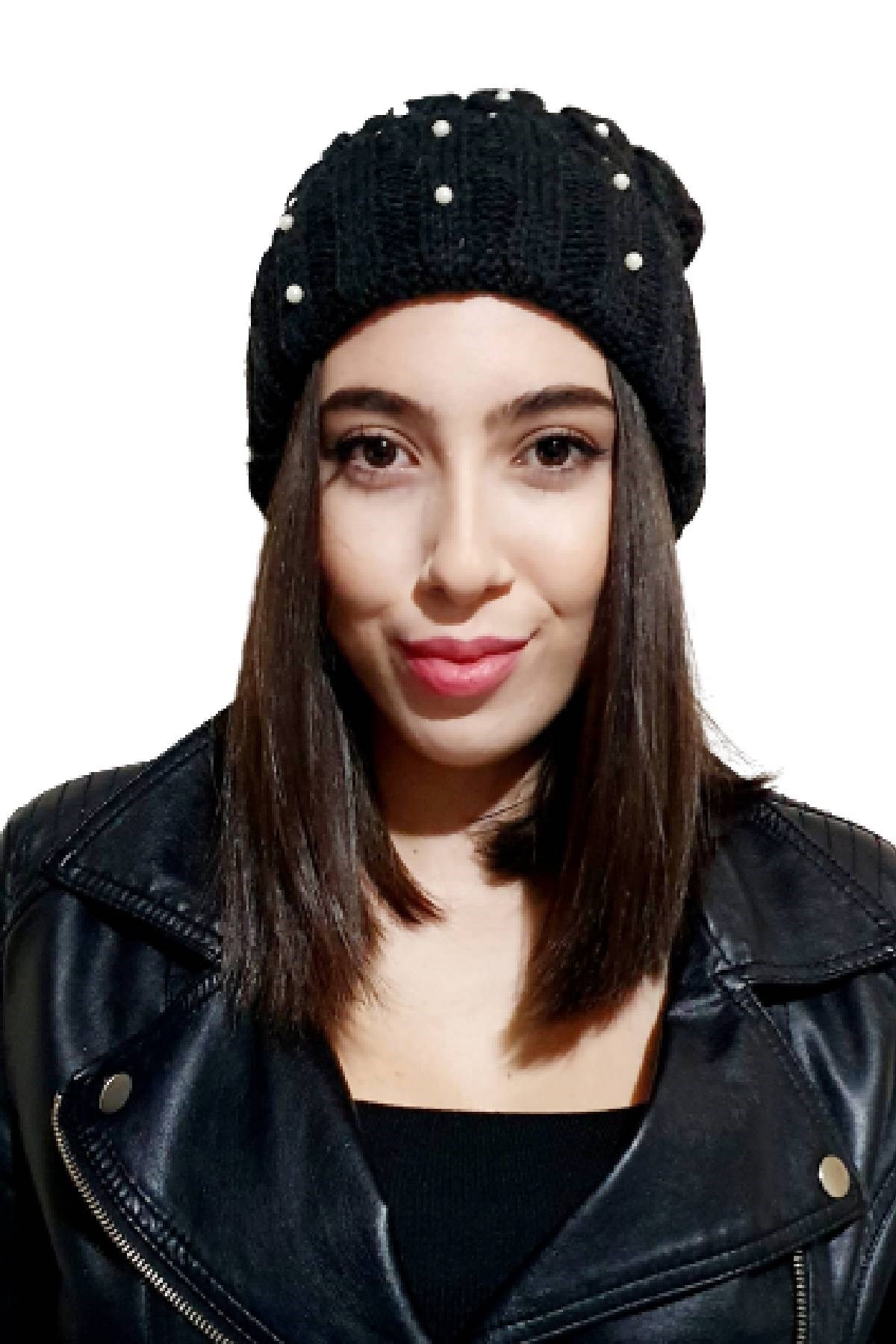Edwol Kadın İncili Tüylü Bere Koyu Gri