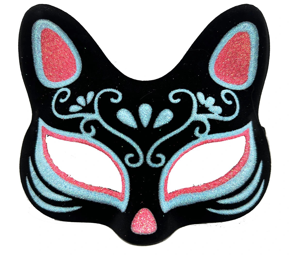 Siyah Süet Mavi Kırmızı Simli Kedi Maskesi