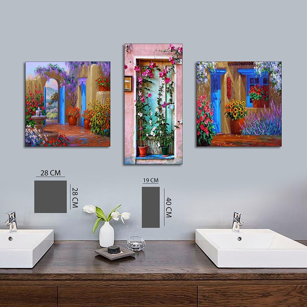 3 Parça Çiçekli Kapılar Mdf Tablo - 3Yatay-517 30X40