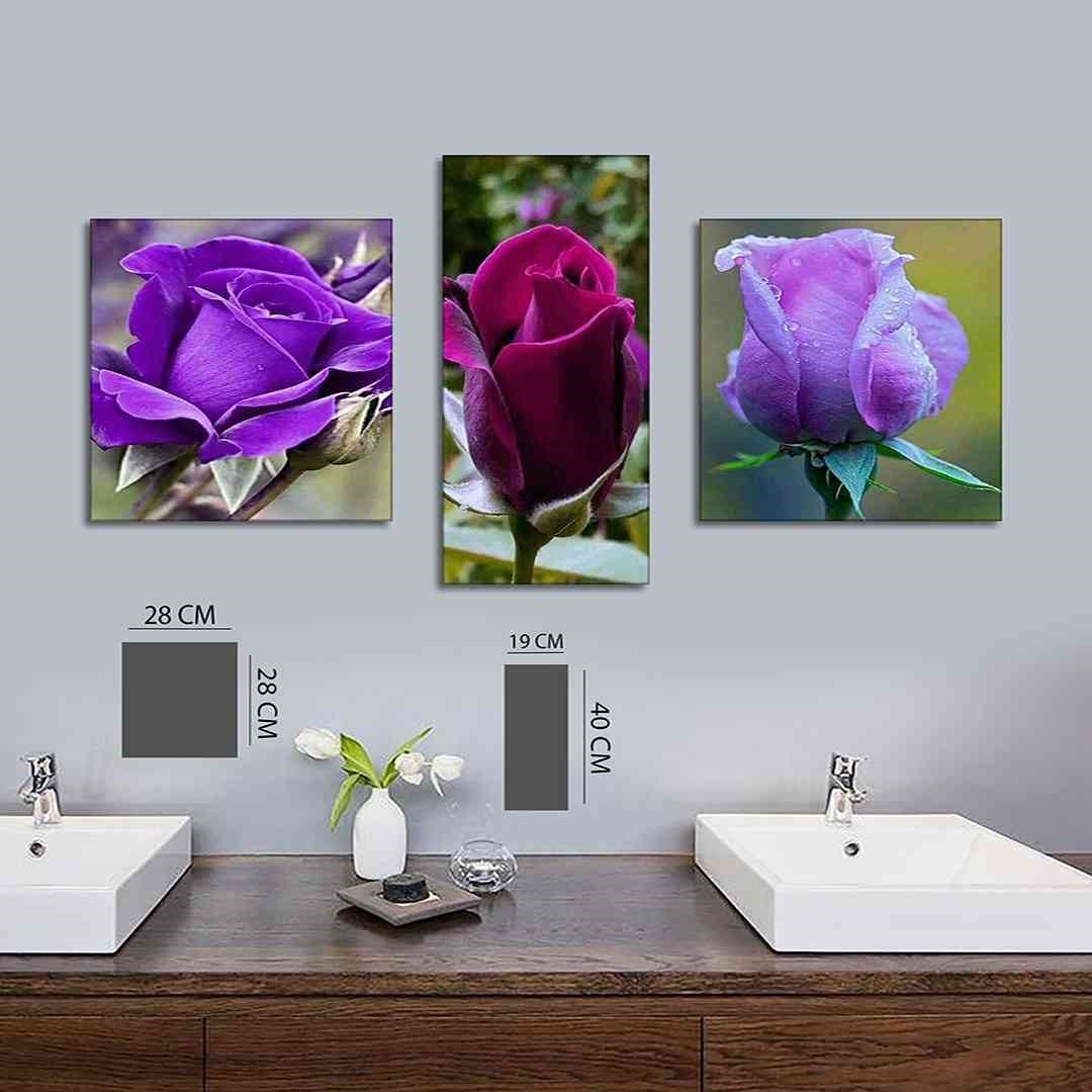 3 Parça Mor Güller Çizim Mdf Tablo - 3Yatay-504 30X40