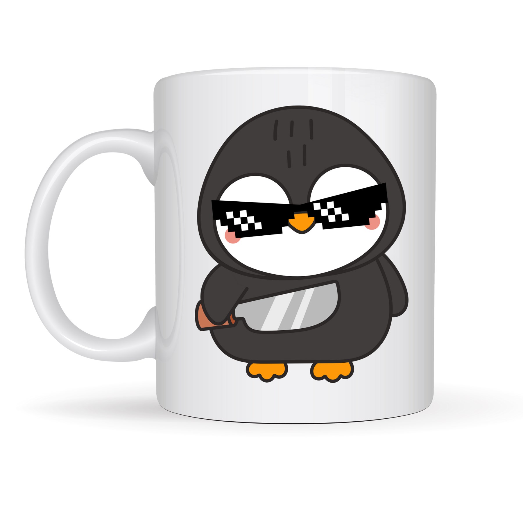 Kupanın üzerindeki gözlüklü penguen figürü, özgüveni, rahat tavrı ve “cool” duruşuyla dikkat çekiyor. Elindeki bıçak ise esprili bir detay olarak tasarıma asi ama eğlenceli bir hava katıyor. Sert değil, tam tersine mizahi ve karizmatik bir anlatımı var. Günün stresini kahvenle birlikte geride bırakman için birebir!