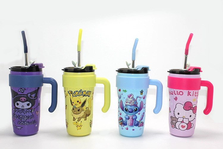 Sevimli Çizgi Film Karakterli Pipetli Termos