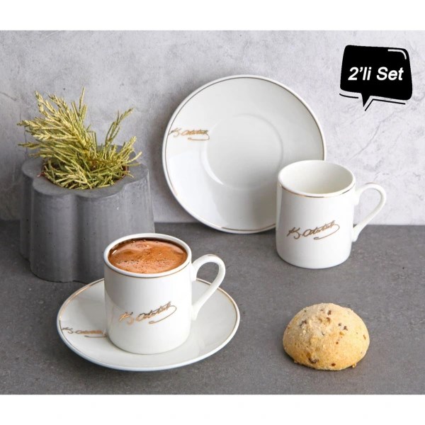 Atatürk İmza Tasarımlı Porselen 2'li Kahve Seti