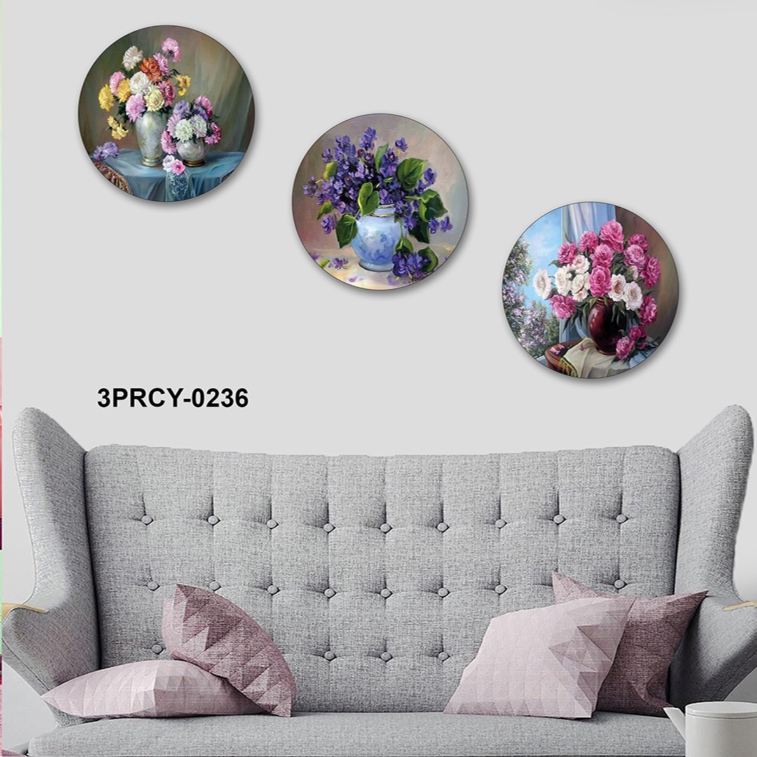 3 Parça Mdf Tablo Dekoratif Çiçekler - T-3Prcy-0236 30X30
