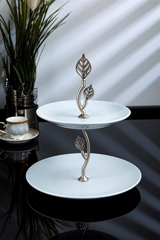 Aferta İki Katmanlı Servis Tabağı (Mat Beyaz) - 26404
