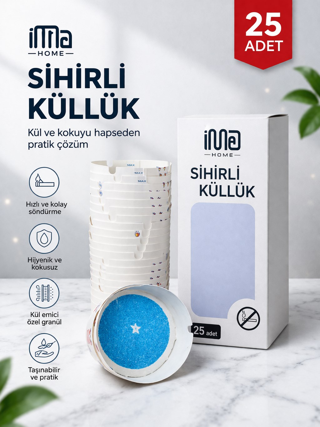 sihirli küllük, kül toplayıcı, dumansız küllük, kokusuz küllük, taşınabilir küllük, masa üstü küllük, pratik küllük, küllük 25 adet, ima home küllük, hijyenik küllük