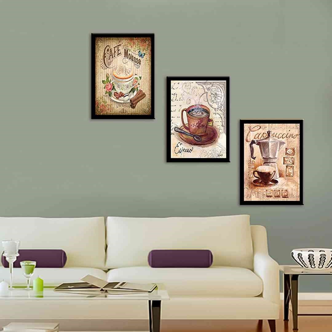 3 Parça Çerçeve Görünümlü Kahve Temalı Tasarım Mdf Tablo - 3Prc40X30-0143 40X30
