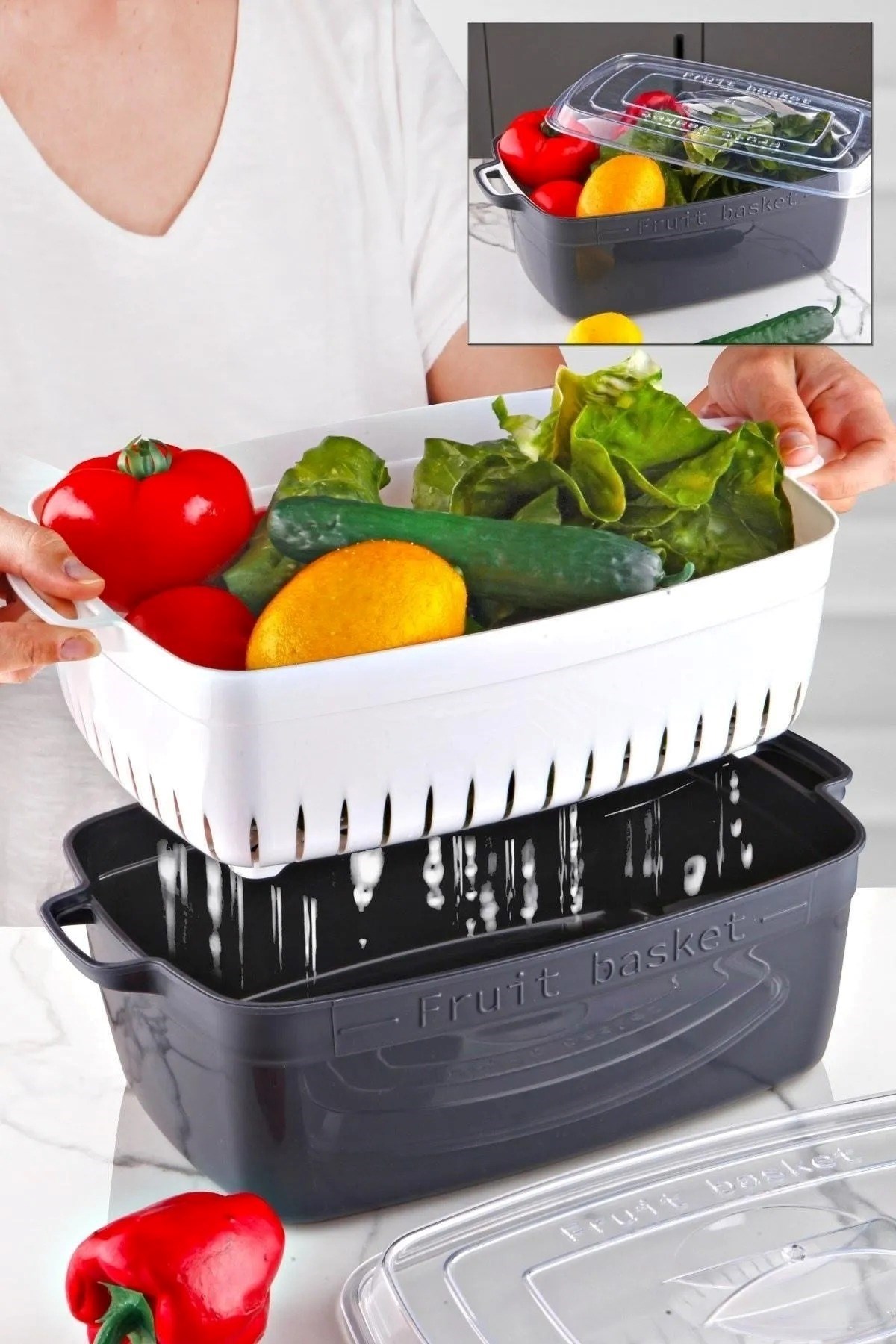 Dikdörtgen Tencere Model Süzgeçli Meyve - Sebze Saklama Kabı Buzdolabı Organizeri