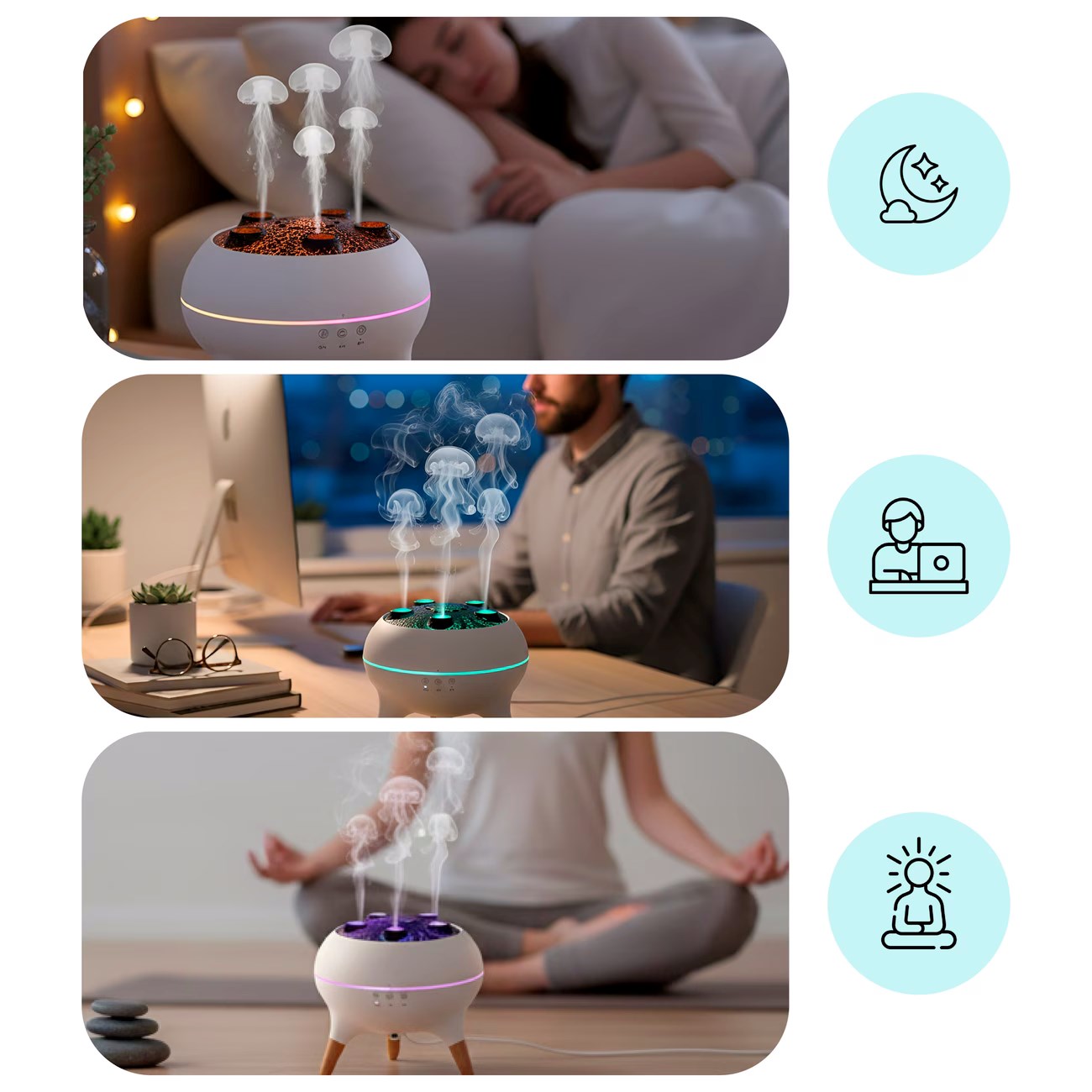 Jellyfish Ultrasonik Hava Nemlendirici, şık deniz anası tasarımıyla yaşam alanlarınıza estetik bir dokunuş katarken, sağlıklı bir hava ortamı sağlar. Ultrasonik teknoloji sayesinde sessizce çalışan bu nemlendirici, ortamın nem seviyesini dengeler ve kuru havanın yol açtığı rahatsızlıkları azaltır.