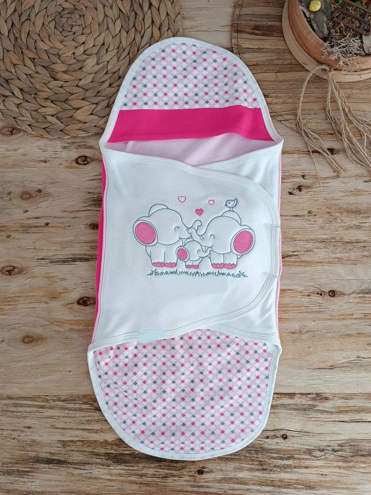 Yenidoğan Mutlu Fil Ailesi Nakışlı Çıt Çıt Kapamalı Bebek Kundak
