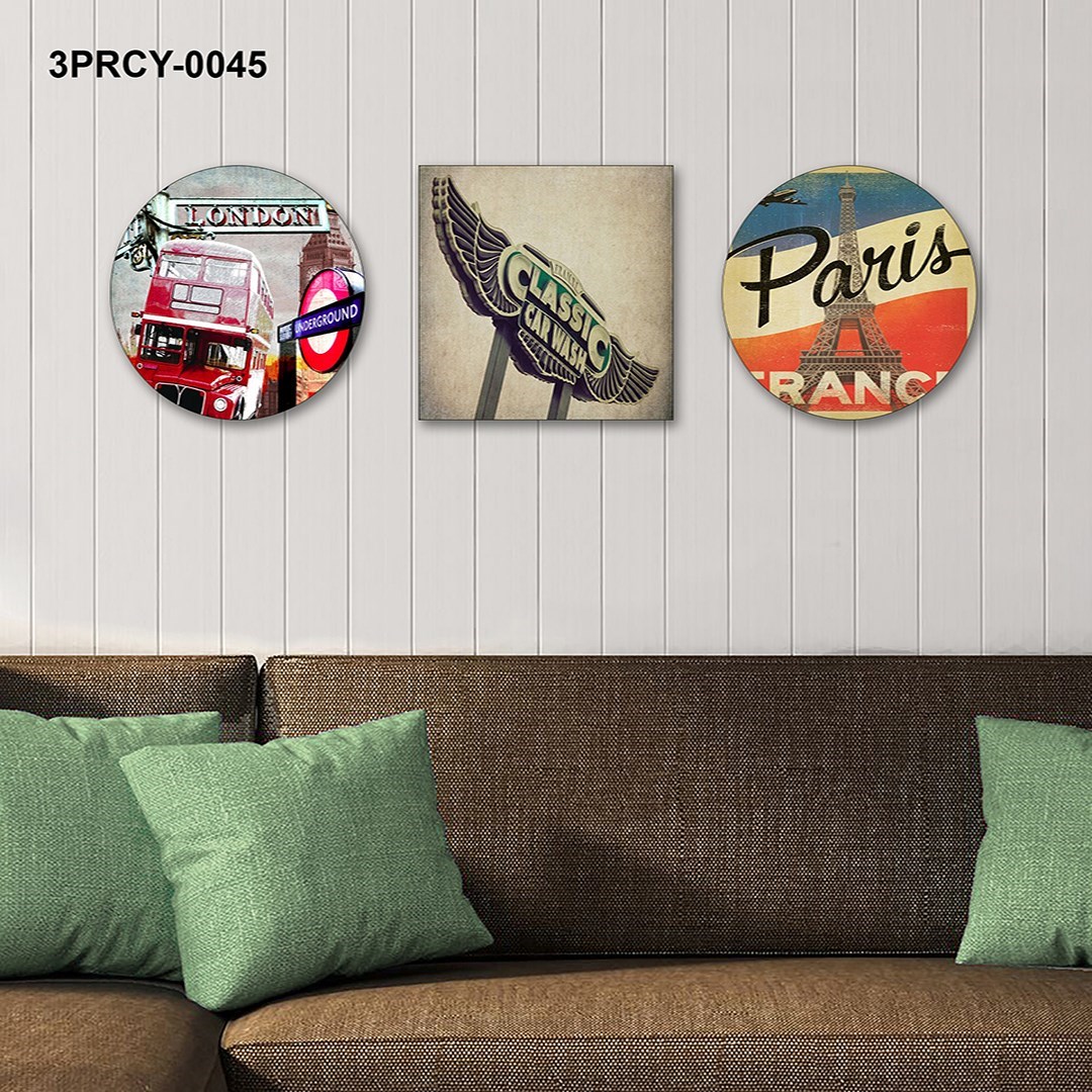 3 Parça Paris Mdf Tablo - T-3Prcy-0045 30X30
